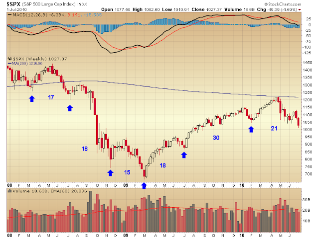 At 21 weeks it's just way too late to press the short side. You risk getting caught as the intermediate cycle bottoms initiating a violent short covering rally.